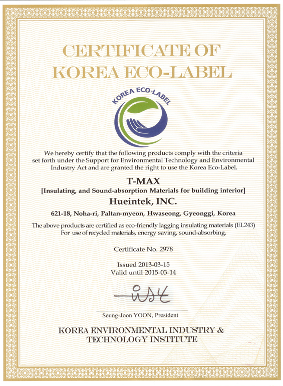 CERTIFICATION Certification Environmental Labeling Korea Environmental Labeling Association Korea Air Cleaning Association Korea Eco-Products Institute TUV SUD Product Service GmbH UL Environment Inflammability performance Korea Fire Equipment Inspection Corporation UL Building material qualifications Underwriter’s Laboratory, Inc. U.S.A Notice of material selection Korea National Housing Corporation Certificate of Quality Agency for Technology and Standards Ministry of Commerce, Industry & Energy Korea Standard Association UL GREENGUARD GOLD ISO 14001 ISO 9001 EPD UL MARK EU TUV REACH Good Recycled Product Environmental Building Material Korea Eco Label ecotmax_adm2025-07-04T08:40:58+09:00